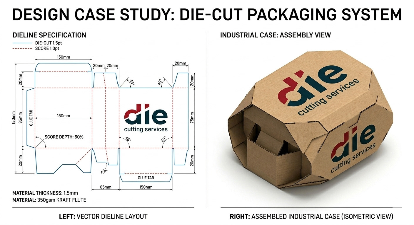 It communicates exactly what Die Cutting Services does, without needing explanation, while positioning them as a modern and reliable partner.