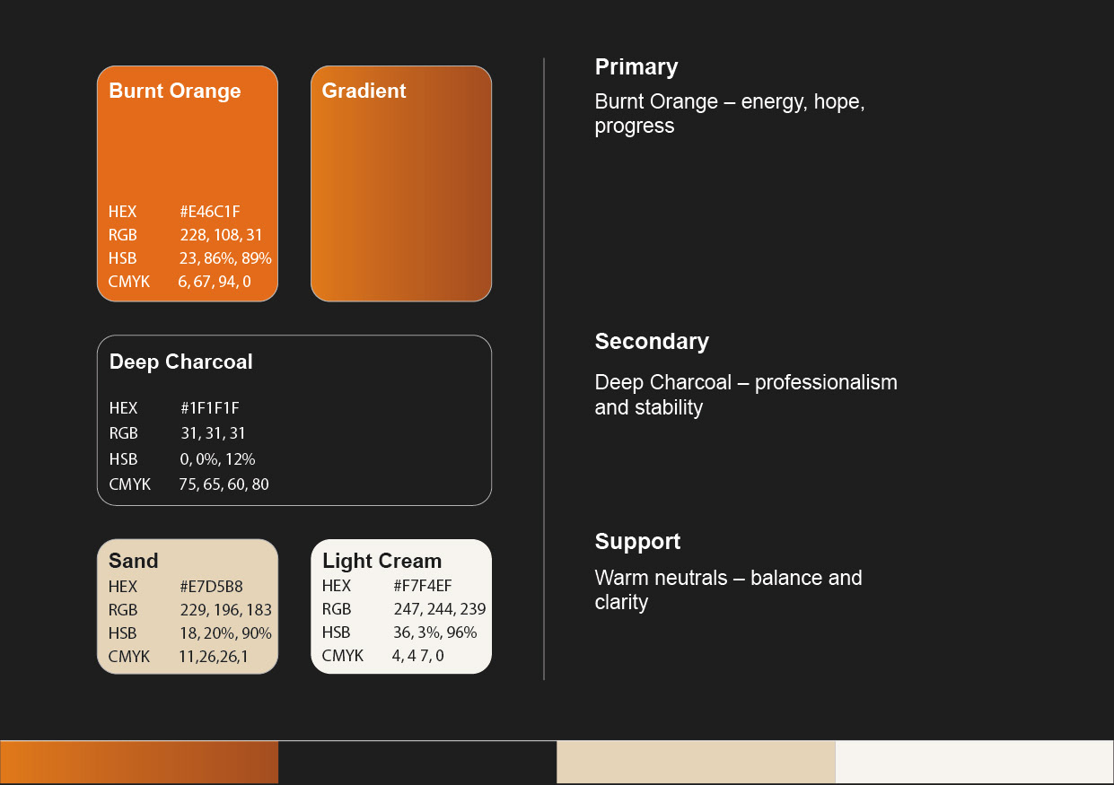 By combining protective symbolism with human energy and optimism, the brand reflects the organisation’s mission to help people move forward with confidence and strength.