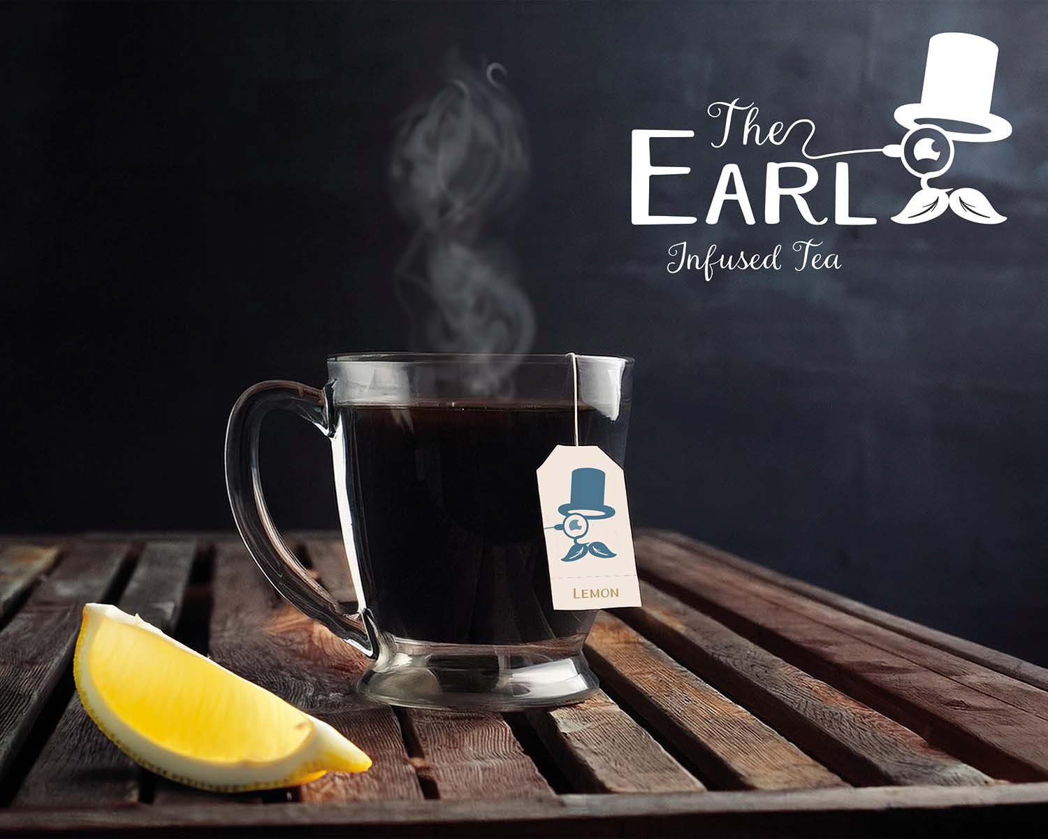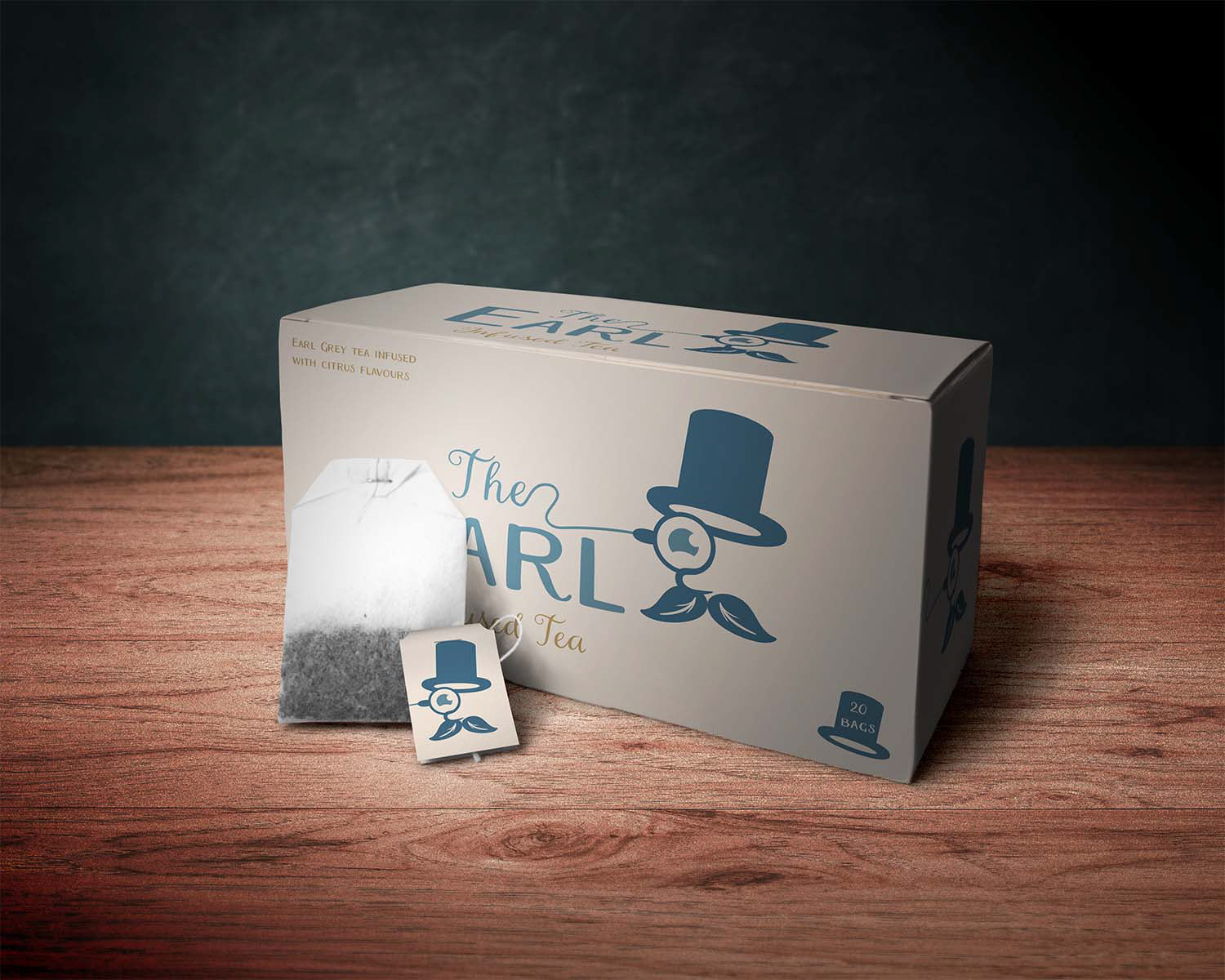 The character design with the top hat, monocle, and moustache, give a visual shorthand for an aristocratic English gentleman; a nod to Earl Grey tea.